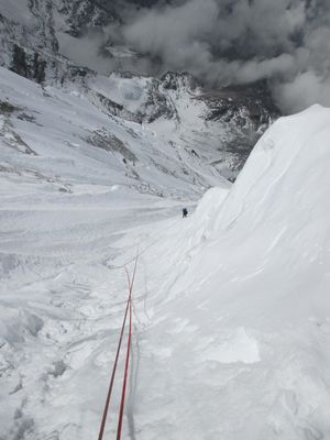 Nous avions appris qu’une expédition japonaise avait échoué sur cette face après avoir cassée son réchaud, alors pour nous c’était le bon moment.