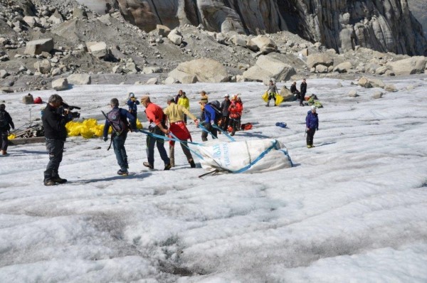 Pour la 6ème année consécutive, le Club Alpin Français et le Groupe Lafuma (Lafuma, Eider, Millet) ont travaillé de concert au nettoyage d’un fleuron des Alpes, la Mer de Glace, qui attire chaque année plus de 500 000 touristes. Après une collecte de 3 tonnes de déchets en 2011 et 2012, la récolte 2013 est en une légère baisse avec 2.5 tonnes, ce qui est une bonne nouvelle : elle montre que les 6 années consécutives de collecte ont porté leurs fruits ! La récolte est essentiellement constituée de déchets métalliques (câbles, poulies, ferraille, boites de conserve…), ainsi que du verre et des emballages en plastique.