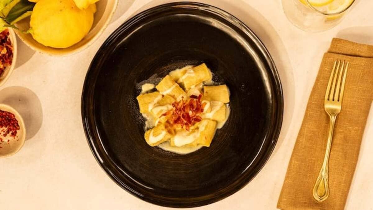 Rigatoni Mezzi Al Bronzo à la Crème de Citron, Parmigiano, Poivre Rose et Jambon Culatello