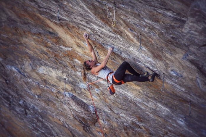 La francaise Julie Chanourdie vient de réaliser son premier 9a en clippant le relais de « Ground Zero » a Tetto di Sarre (Italie)