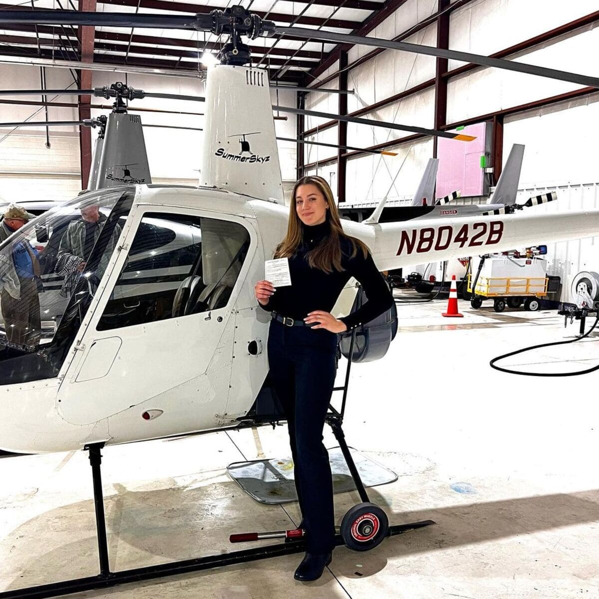 Après avoir décroché son diplôme de lycée, Sabrina se lance dans des études plus poussées, suivant une formation d’instructeur de vol à l’université. À 20 ans, elle réussit brillamment à obtenir son diplôme d’instructeur de vol et sa licence de pilote d’hélicoptère. Dans la foulée, elle est recrutée par une compagnie aérienne, et commence à voler tout au long de l’année. À ce moment-là, Sabrina cumule déjà des années d’expérience et une expertise solide, ce qui fait d’elle une professionnelle du secteur, prête à relever tous les défis.