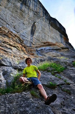 – Adam : La voie me convenait parfaitement. 40 mètres d’un mur parfait, comme coupé avec un couteau. Petites arquées, bonnes prises de pied, repos corrects entre les sections. Quand j’ai vu la ligne la veille, j’ai tout de suite flashé, c’est tellement beau !