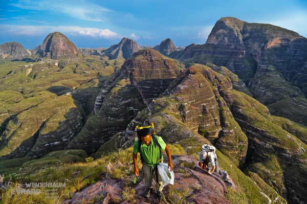 Depuis 4 ans, l’explorateur et cinéaste Evrard Wendenbaum (vous vous souvenez surement d’Amazonian Vertigo, le documentaire ébouriffant sur l’ascension du Salto Angel au Vénézuela par l’équipe d’Arnaud Petit) porte avec son association Naturevolution, un ambitieux projet de conservation d’une région montagneuse extraordinaire de Madagascar, véritable coffre-fort de biodiversité malheureusement en grand danger, le massif du Makay. En 2010 et 2011, il y a organisé quelques unes des plus grandes missions scientifiques jamais menées et en a ramené plusieurs centaines de nouvelles espèces, les premières peintures rupestres de Madagascar et le premier documentaire d’aventure tourné en 3D ‘Makay, les aventuriers du monde perdu’.