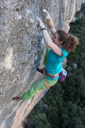 Puis je la rejoins à Margalef avec un ami. ‘Era vella’, ligne imposante avec une difficulté soutenue sur 50m ! Anak l’enchaine au 7ème essai, après être tombée la veille avec le bac final dans la main ( cf photo )…