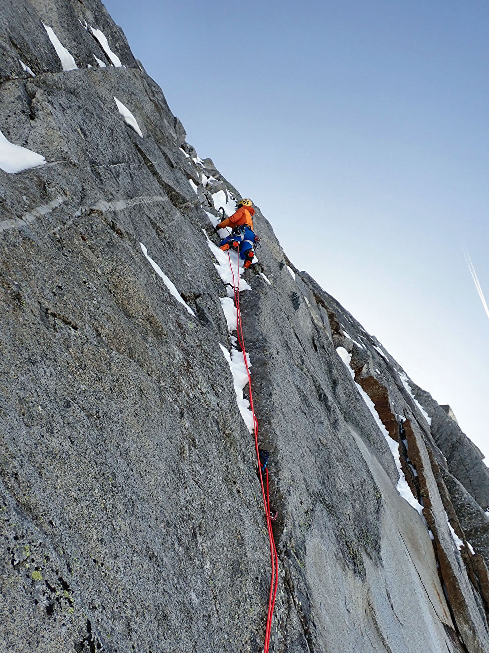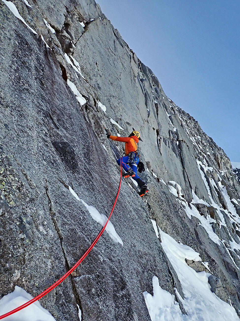 Le Rébuffat-Terray Sur Aiguille des Pélerins, est peut-être le plus célèbre. Depuis que les grimpeurs britanniques Rab Carrington et Alan Rouse l’ont grimpé dans le style « mixte moderne » en 1975, il est devenu l’un des couches les plus classiques et les plus populaires de Chamonix. Il y a aussi un excellent exemple plus proche de chez nous: en 2015, Francesco Salvaterra et Marcello Cominetti ont fait la même chose avec Via hruschka Sur Mur de Pisciadù Orientale, qui est maintenant l’un des ravins les plus répétés des Dolomites.