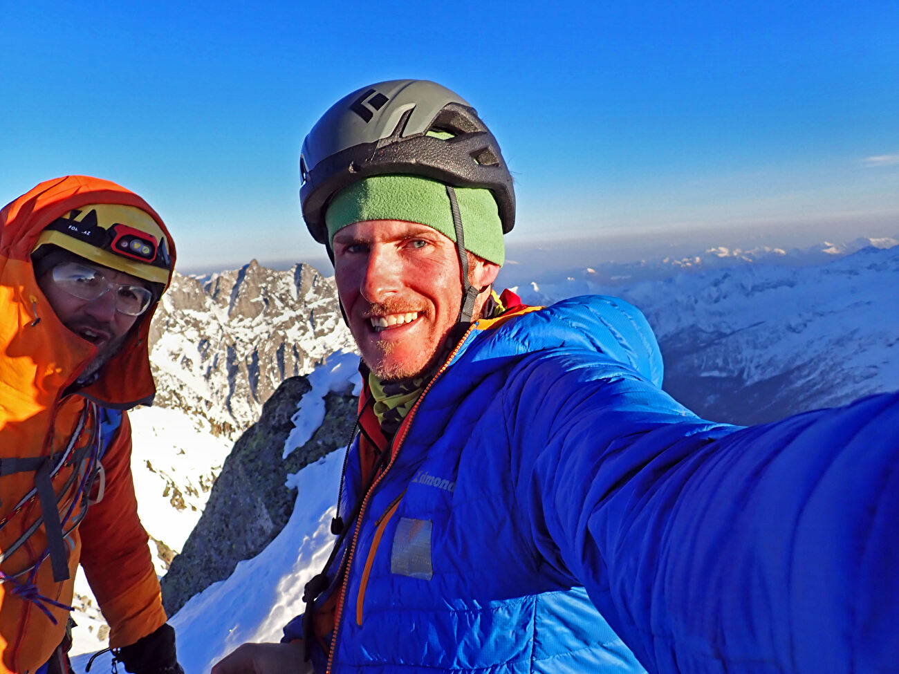 Le pas suivant était le mien et avait le potentiel d’être tout aussi bon: un délicat ruban de glace qui monte une dalle de granit complètement lisse, en maintenant une largeur cohérente pour les 60 mètres. En bref, un peu parfait – mais le manque de pro a rendu un peu énervant. Pourtant, c’était le dernier terrain difficile; De là, nous avons grimpé rapidement et avons rapidement atteint le sommet.