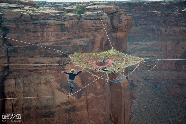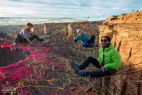 Combiné a de la slackline, ca donne des structures énormes, originales, a la limite entre toile d’araigné et oeuvre d’art