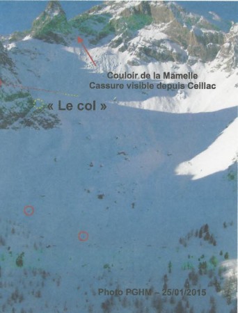 « À la vue des informations recueillies, il a été émis l’hypothèse que le groupe, expérimenté et bien équipé, skiait sur des pentes moyennes et que son chef, un leader reconnu, conscient du risque, faisait descendre ses équipiers un par un comme l’exigent les règles de sécurité. Le groupe est descendu de la crête des Crestettes du vallon du Bachas dans des pentes à maximum 30°, et non pas dans celles à 45° du couloir de la Mamelle. Il semble que trois skieurs (dont le chef de groupe), avaient descendu un par un une partie de la pente et attendaient ensemble d’être rejoint. Un dispositif enseigné dans les manuels et appliqué dans ses nombreuses sorties par le leader, breveté FFCAM ski de montagne et alpinisme, qui limite le risque à un seul skieur. Mais l’avalanche de grande taille (300 m de large sur 900 m de long) s’est déclenchée loin au-dessus du groupe et a déferlé avec un volume de neige difficile à prévoir, les emportant tous. Allant même au-delà des précautions ordinaires, le chef de groupe avait fait une première reconnaissance cinq jours avant la sortie, montant à la crête des Crestettes pour observer d’en haut les conditions de neige dans le vallon du Bachas. Il était encore remonté la veille de la sortie pour repérer le début de l’itinéraire de montée », précise le Caf dans sa contre-enquête.