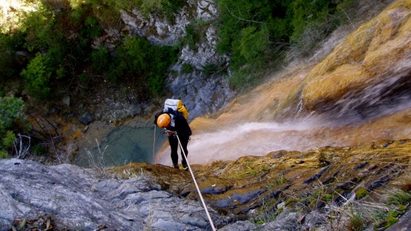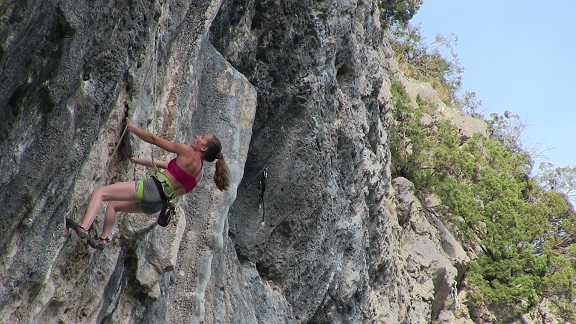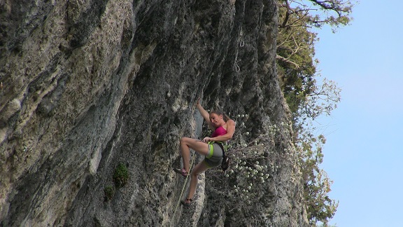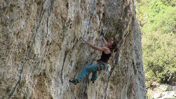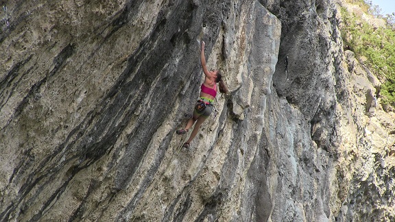 Céline encore au taquet dans ‘Abregnief’ 8b à peine quelques minutes après avoir dérouillé ‘Le mur des 6 clopes’. (coll. Délas-Kairn.com)