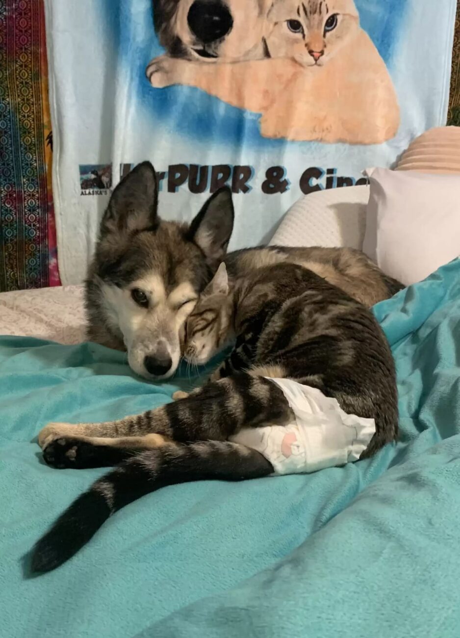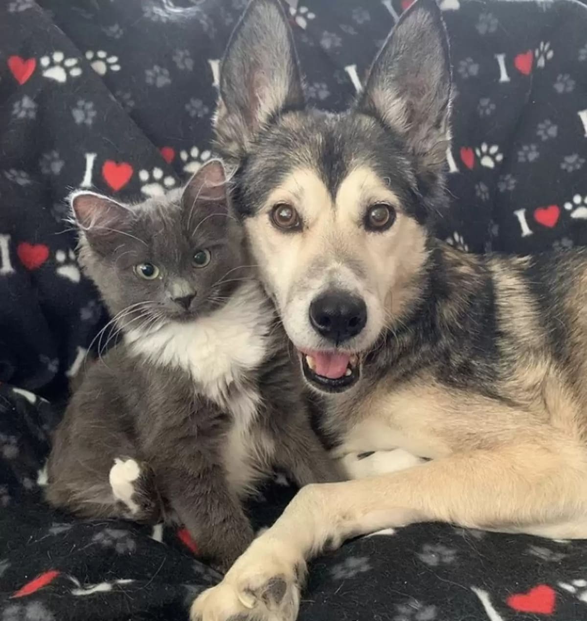 Il existe des amitiés étonnantes dans le monde animal, et l’histoire de Cinder et Bridger McPurr en est un parfait exemple. Ce duo, composé d’une chienne et d’un chat, est un véritable modèle d’amour et de complicité, qui fait fondre le cœur de tous ceux qui croisent leur chemin. Bien qu’ils viennent d’horizons différents et aient des besoins spécifiques, leur passion pour les câlins a fait naître une amitié indestructible.