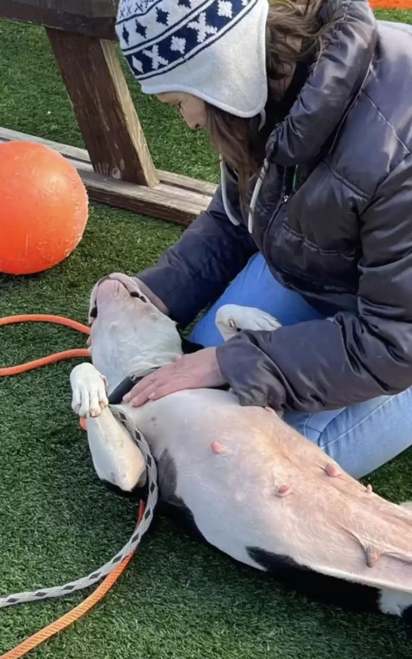 Aujourd’hui, Cutie Pie n’a plus rien de la chienne effrayée du quartier industriel. Elle joue, elle court, elle réclame des câlins. Elle attend toujours une adoption définitive, mais en attendant, elle goûte à la douceur d’une vraie vie de chien.