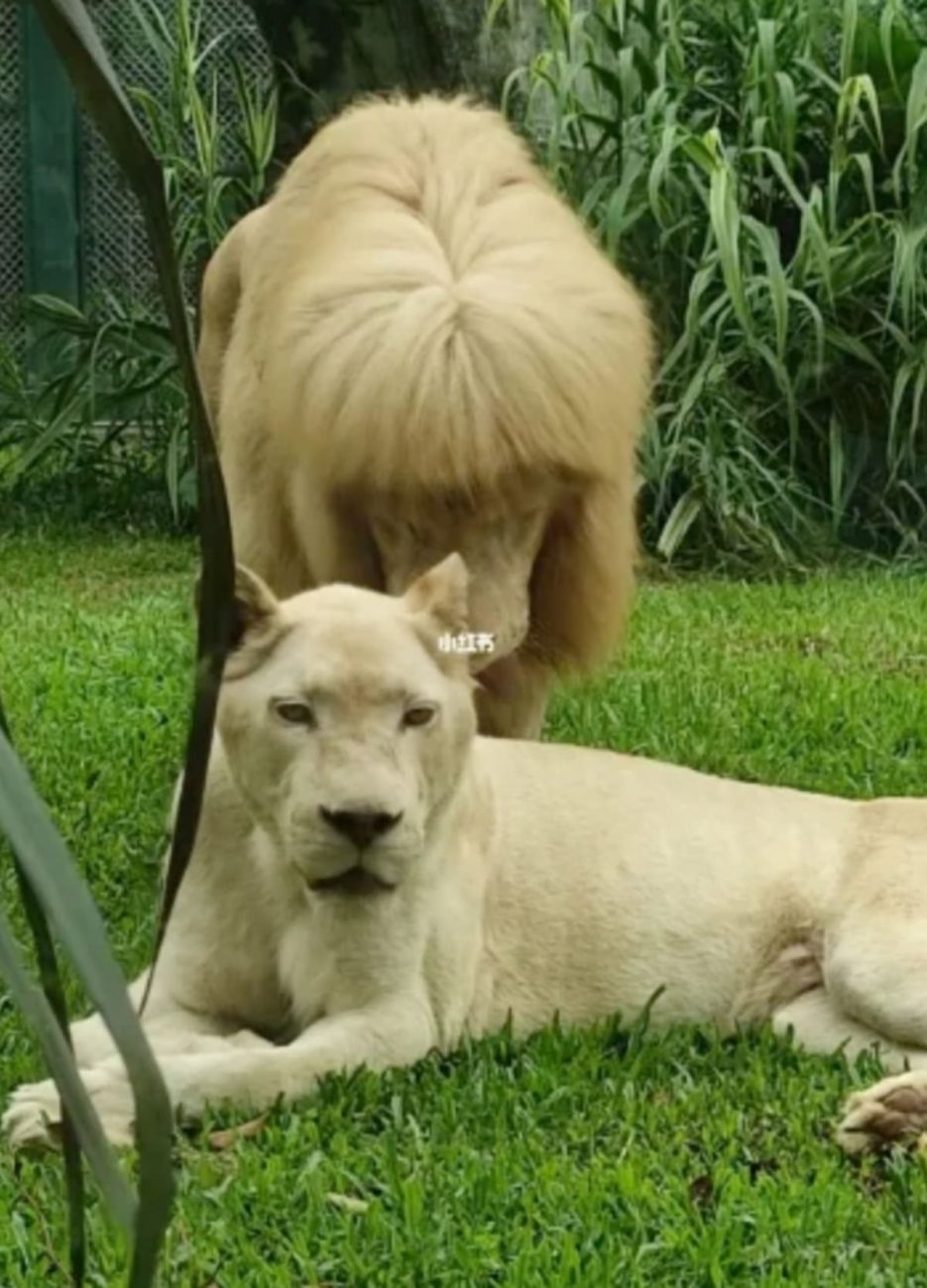 Hang Hang appartient à la sous-espèce Panthera leo krugeri, originaire d’Afrique du Sud, mais ce qui le rend exceptionnel, c’est sa couleur blanche. Ce pelage est dû à une condition génétique appelée leucisme, qui entraîne une pigmentation très claire, presque crème. Contrairement à l’albinisme, le leucisme n’affecte pas la couleur des yeux, mais donne ce fameux pelage atypique.