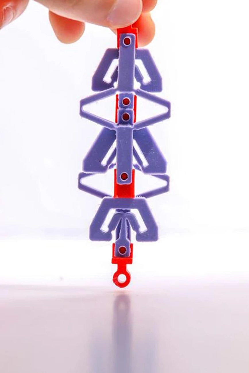 Ce phénomène ne vient pas de la matière brute, mais de la manière dont elle est agencée. Les chercheurs ont conçu des structures modulaires où des éléments flexibles, couplés de façon précise, se reconfigurent sous traction et provoquent une contraction brutale (instabilité). En pratique, le système se comporte comme un réseau de « ressorts » non linéaires dont la courbe force-déplacement s’auto-intersecte — la clé du countersnapping.²