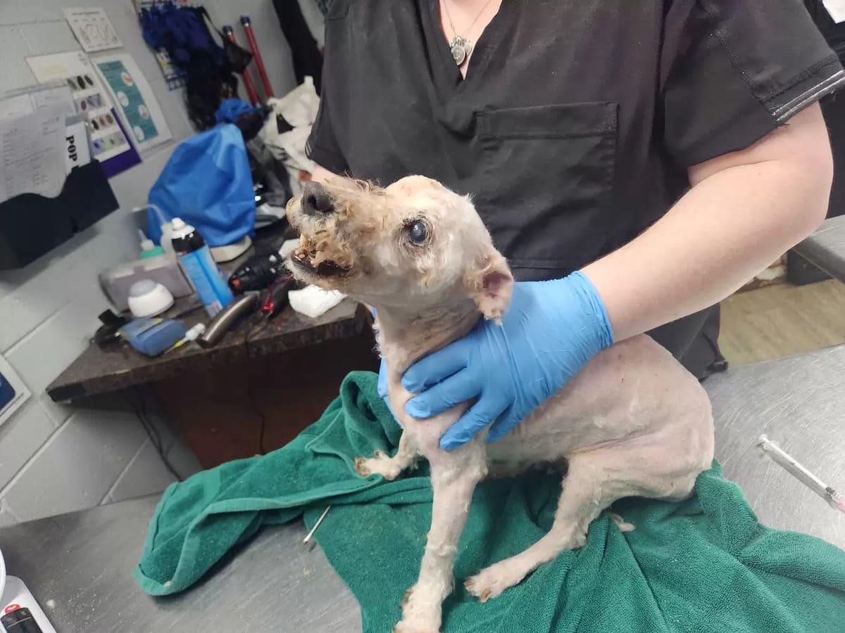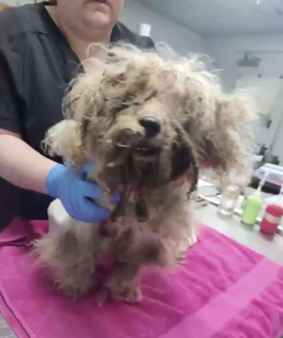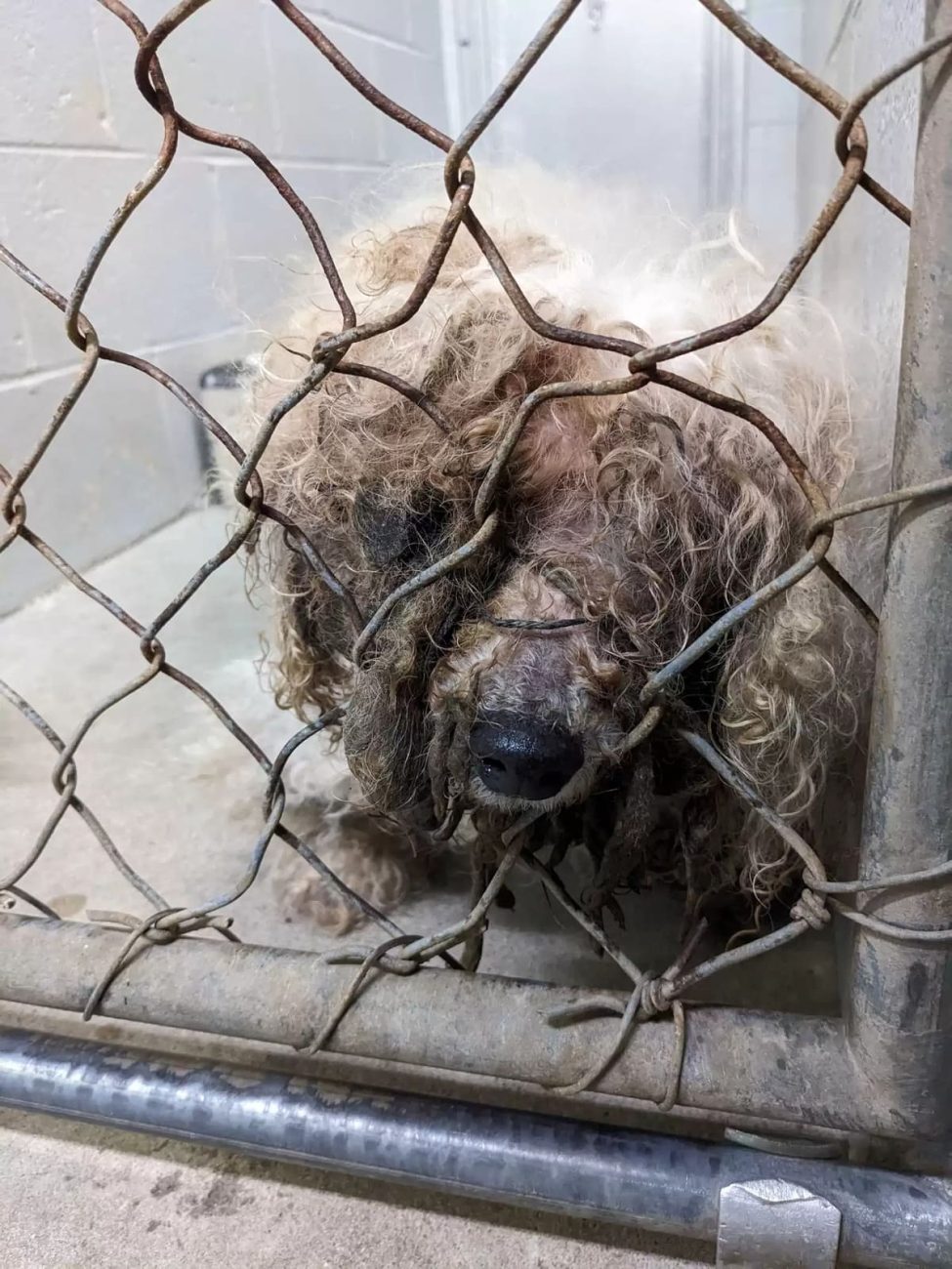 « Il était dans un état pitoyable : le poil emmêlé jusqu’aux yeux, des ongles recourbés, une haleine infecte, et un regard presque éteint », raconte April. Malgré tout, une chose était intacte : sa douceur. « Il était curieusement calme et sociable, comme s’il savait qu’il était enfin en sécurité. »