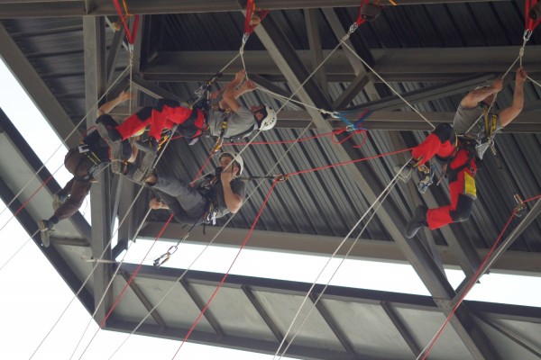 Le contenu des épreuves est, lui aussi, original : montée à la corde, certes, mais aussi pendules, tyrolliennes… et bien sur de vrais travaux (perçage, vissage, fixation…)
