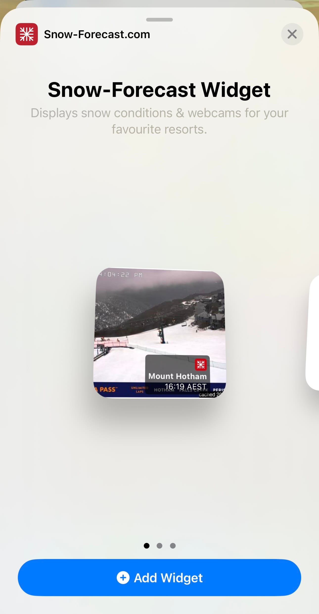 - Cliquez sur l’icône Snow-Forecast.com lorsque vous la trouvez et explorez vos options de widget – vous pouvez choisir entre les rapports de webcam ou de neige en direct pour l’une de vos stations préférées. Assurez-vous d’ajouter les stations de ski que vous souhaitez à votre section Favoris dans l’application à l’avance!