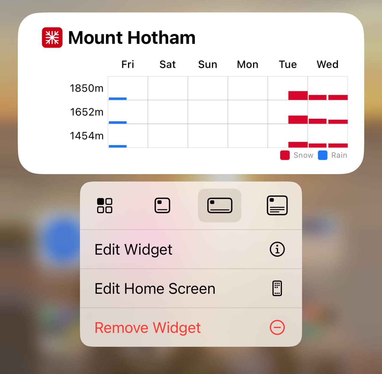 Les widgets vous montrent les chutes de neige et la pluie prévues au cours des prochains jours pour votre station de ski sélectionnée ou le dernier instantané webcam. Les webcams sont mis à jour toutes les heures pendant les heures de clarté, cependant, veuillez noter que les webcams ne sont disponibles qu’à certains endroits. Voir ci-dessous pour des instructions sur la façon de créer une configuration.