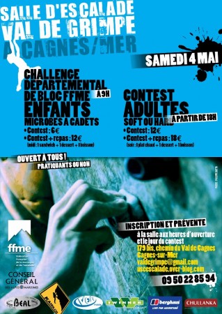D’abord un challenge départemental de bloc ffme pour les catégories microbes à cadets puis à partir de 18 h contest adultes agrémenté d’un repas convivial.