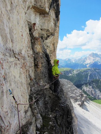 Après avoir réalisé la voie ‘Pan Aroma’ (8c, 500 m, première ascension Alex Huber en 2001) l’été dernier, le grimpeur aragonais Dani Moreno prouve qu’il est aussi à l’aise en escalade sportive (niveau 9a, participation au circuit des coupes du Monde,..) qu’en big wall avec une nouvelle fois une répétition d’une voie extrême d’Alex Huber à la Cima Ovest du Tre Cime di Lavaredo toujours dans les Dolomites : ‘Bellavista’, 8c, 500 m. 9 heures d’effort en tout, en composant avec des parties mouillées. Le blog de Dani