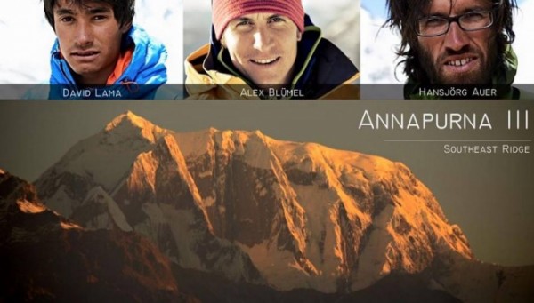 Hansjörg Auer et Alex Blümel retournent dans le massif des Annapurna six mois après y avoir perdu leur compagnon Gerry Fiegl lors de l’ouverture d’une voie au Nilgiri Sur. David Lama s’était déjà encordé avec Hansjörg Auer, notamment lors de la première hivernale du Sagwand réalisée avec Peter Ortner dans les Alpes tyroliennes. David Lama a également été au Népal à l’automne dernier pour une expédition au Lunag Ri avec Conrad Anker.