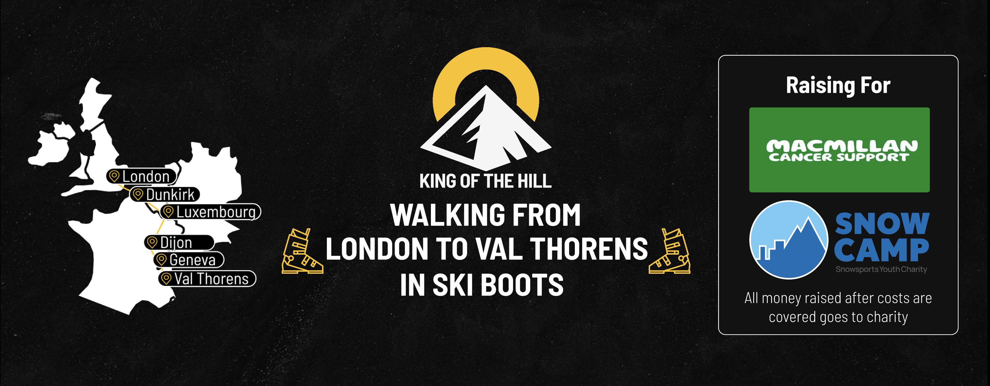 La promenade emmènera le duo d’Oxford Circus dans le centre de Londres à travers le Kent jusqu’à Douvres, à Dunkerque (par ferry) à travers la Belgique, le Luxembourg, la France et la Suisse – se terminant par Val Thorens, à une altitude de 2 300 m.
