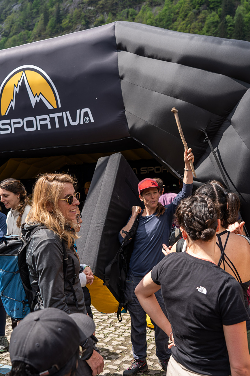 Le samedi à 11 h, sous un soleil chaud du soleil Val Masino et Val Di Mello, nous nous sommes réunis au stand de La Sportiva pour notre première réunion. Après les présentations, Mina Markovič – triple vainqueur de la Coupe du monde, champion d’Europe et légende de l’escalade – nous a conduits à travers un étirement dynamique sous le chapiteau du village. Ensuite, nous sommes partis vers la zone d’escalade choisie, bavardant tout le long, comme la tradition dicte ;-).