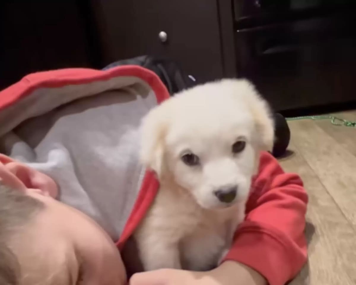 Sans hésiter, elle a pris le chiot dans ses bras et l’a ramené chez elle. Dès son arrivée, Genia a cherché à retrouver les propriétaires potentiels en postant des photos sur Facebook, espérant réunir ce petit animal avec sa famille. Malheureusement, les commentaires laissaient penser que ce chiot avait été abandonné par quelqu’un qui s’était arrêté brièvement au parc avant de repartir.