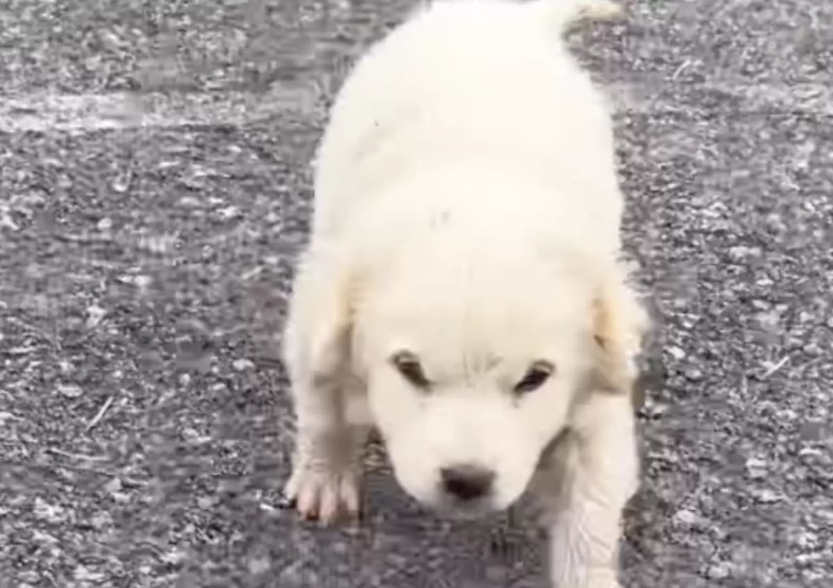 En s’approchant, Genia a vite réalisé que ce qu’elle prenait pour un jouet n’était autre qu’un petit chiot blanc, frêle et visiblement en détresse. Ce moment m’a rappelé une fois où, lors d’une promenade dans mon quartier, j’avais aperçu un animal isolé sur le trottoir, et j’avais immédiatement ressenti l’urgence de l’aider. Genia, émue par la situation, a documenté sa rencontre sur les réseaux sociaux en partageant quelques images et en exprimant toute son incrédulité : « Il ressemblait à une peluche posée sur la route. Tellement petit, effrayé et grelottant de froid. »