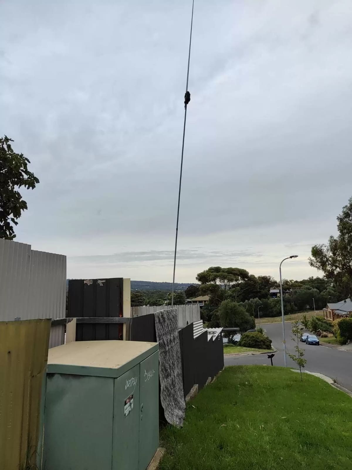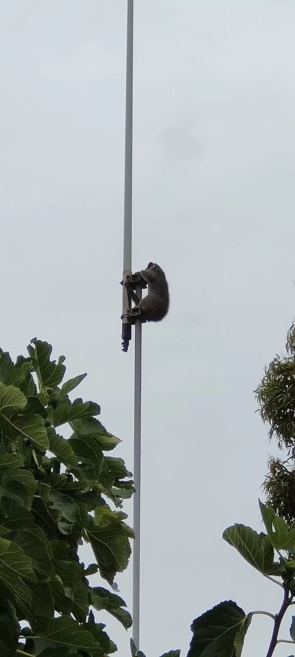 Danielle Van Bakel, habituée à la vue d’un grand poteau électrique dominant son jardin, ne s’attendait pas à y découvrir quoi que ce soit d’inhabituel. Pourtant, ce jour-là, une forme grisâtre accrochée à mi-hauteur a attiré son regard. Elle pense d’abord à un amas de feuilles ou à un sac plastique… jusqu’à ce qu’elle remarque que la chose respire.