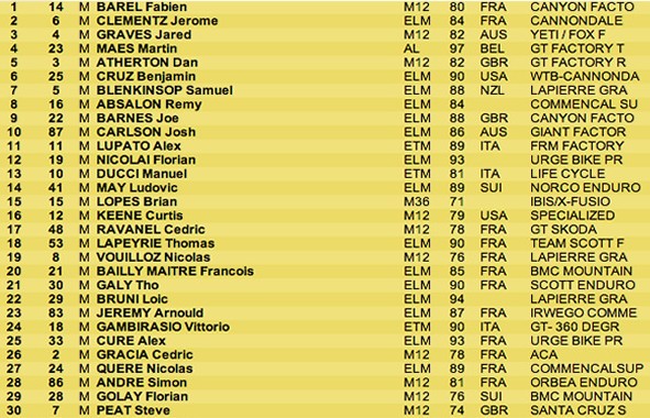 Un superbe début dans les Enduro World Series pour Fabien Barel (Canyon) visiblement en grande forme qui remporte la première manche à Punta Ala (Italie) devant Jérôme Clementz (Cannondale).