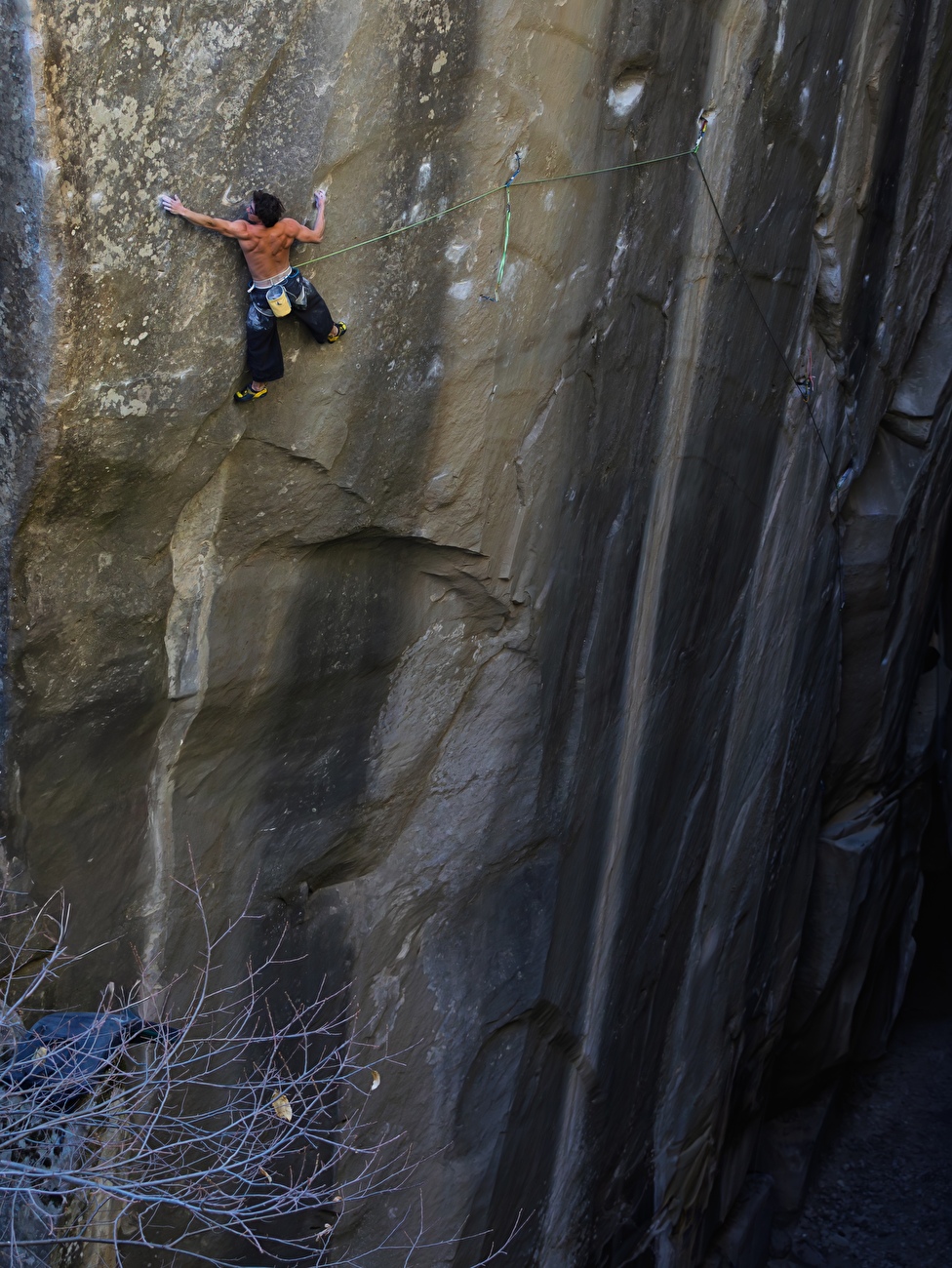 Daligault a déjà gravi le 9a et c’est évidemment sa plus difficile ascension traditionnelle à ce jour après avoir gravi la version la plus facile, Le Voyageil y a deux ans. Il ne lui fallait plus que huit séances, deux au printemps dernier et six à l’automne 2025, à l’approche du point rouge du 12 décembre.