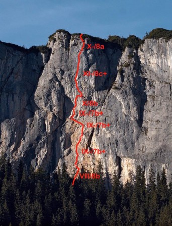 Connu pour ses réalisations extrêmes en bloc notamment, le grimpeur autrichien Fabian Buhl vient de réussir la première répétition de la grande-voie ‘Nirwana’, 7 longueurs, 8c+ située dans le Sonnwand de Loferer Alm en Autriche. Ouverte par Alex Huber au printemps 2013, la voie ne comporte que les relais et 17 points en tout, obligeant à grimper en partie en trad. L’avant-dernière longueur peut être qualifiée de longueur-clé : 8c+ pour 50 mètres, pour une grimpe de plus en plus dure, à la fois technique mais aussi athlétique dans du raide. L’ascension a été filmée donc une vidéo verra le jour dans le futur…