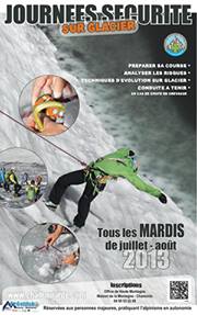 Matériel : votre matériel personnel de progression et sécurité sur glacier. Pour la progression les incontournables sont : baudrier avec assureur et mousqueton, piolet, crampons, casque, gants précis, 1 corde de 40 à 60m. Pour la sécurité le kit doit comprendre 2 sangles de 120 cm chacune avec leur mousqueton à vis (idéalement ovale à section ronde), 1 autobloquant (type Tibloc) avec un anneau de 50 à 60 cm en cordelette de 6 à 7 mm de diamètre et mousqueton à vis, au minimum 2 mètres supplémentaire de cordelette , 1 autobloquant mécanique (type Micro Traxion, Ropeman) avec son mousqueton, 2 broches à glace et leur mousqueton simple.