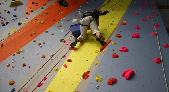 Haut de 11 mètres, un mur d’escalade flambant neuf avec différents types de reliefs (dièdre, dalle, vertical, dévers, bordure, surplomb et traversée) est dressé depuis mi-décembre au complexe sportif Jean-Juge de Fourmies (59).