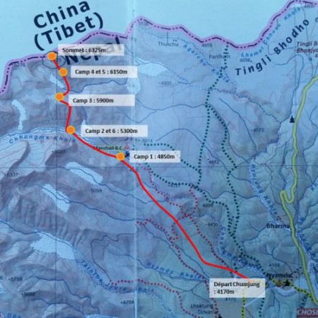 Nous décidons de nommer le sommet « Chhungma Himal » et proposons pour cette nouvelle voie : « L’arête de la Duchesse » (400m – PD).