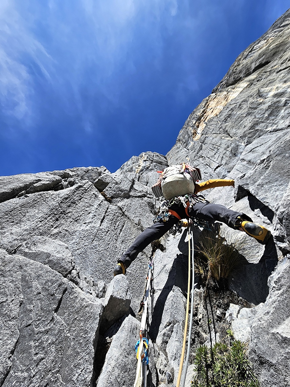 Néanmoins, les grimpeurs ont prévalu. « Outre l’effort, la difficulté, l’altitude, les hauts et les bas de l’ouverture d’une nouvelle ligne, ce qui nous a vraiment marqué était cette affichage brut et écrasant de la nature. Après sept saisons dans la Blanca, nous n’avions jamais rien vécu de tel. Partager le mur avec des condors – quelque chose de si rare et puissant – était tout simplement incroyable. »