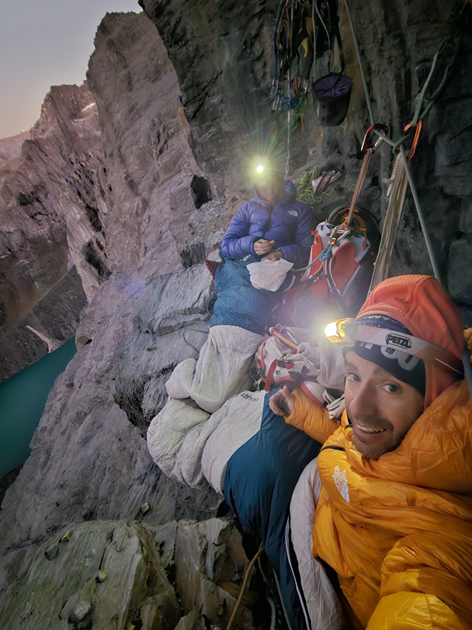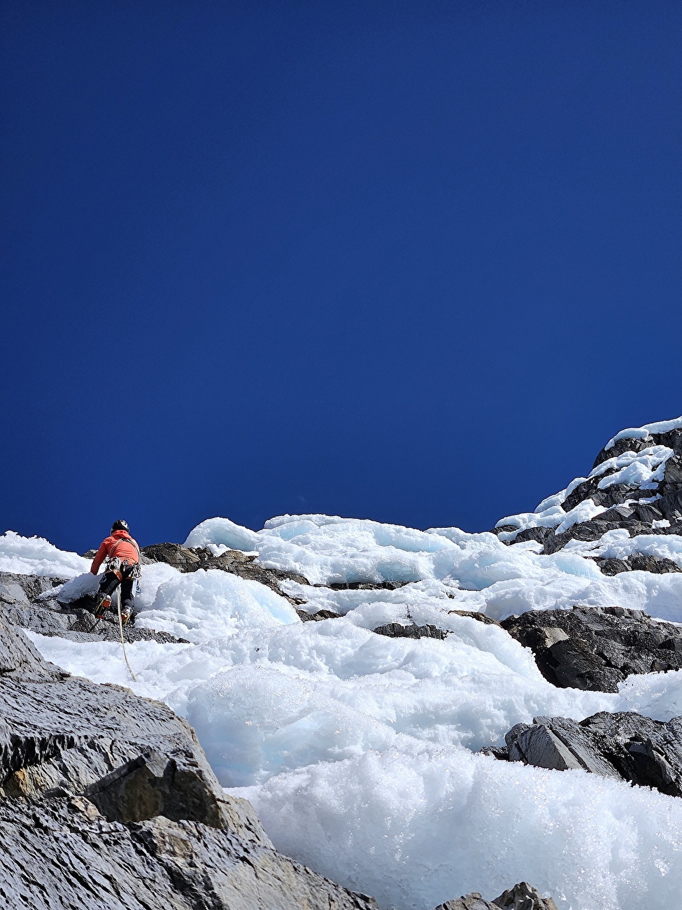 La paire n’a laissé aucun engrenage insitu. « C’est surtout une grosse montée en roche – pensez au style de la esfinge – mais plus long, plus haut et avec les terrains finaux sur la neige et la glace, ce qui rend la montée encore plus complète. complexe logistique. «
