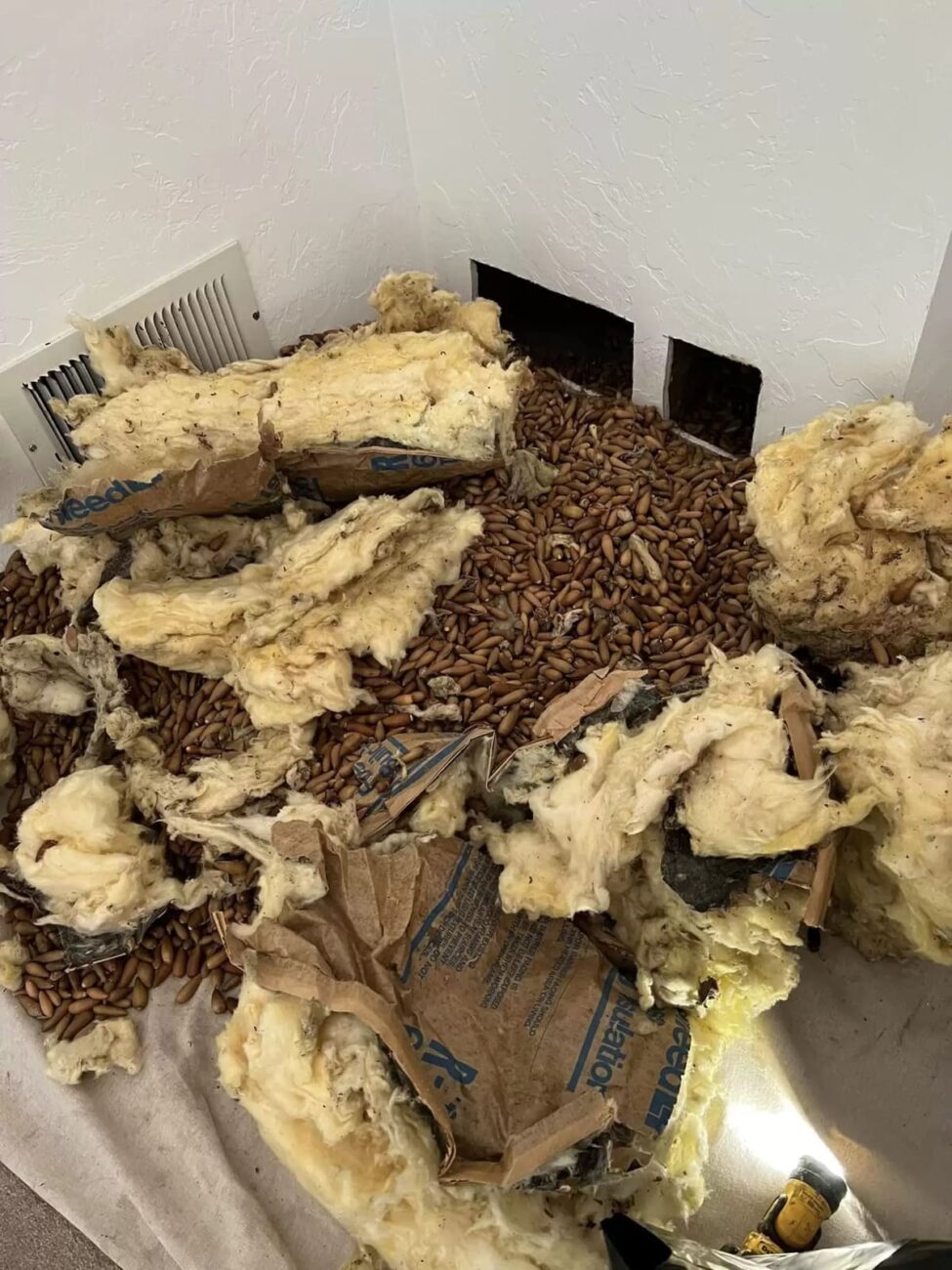 Récemment, Castro a été appelé à intervenir dans une maison où des dégâts avaient été causés par un pic-vert local. Ce dernier, comme à son habitude, avait percé plusieurs trous dans le revêtement de la maison pour y stocker sa nourriture. Dans ce cas particulier, ce n’étaient pas des insectes qu’il avait stockés, mais principalement des glands. Le problème, c’est que les glands ne restaient pas là où ils étaient censés être. Ils tombaient dans les cavités vides à l’intérieur des murs de la maison.
