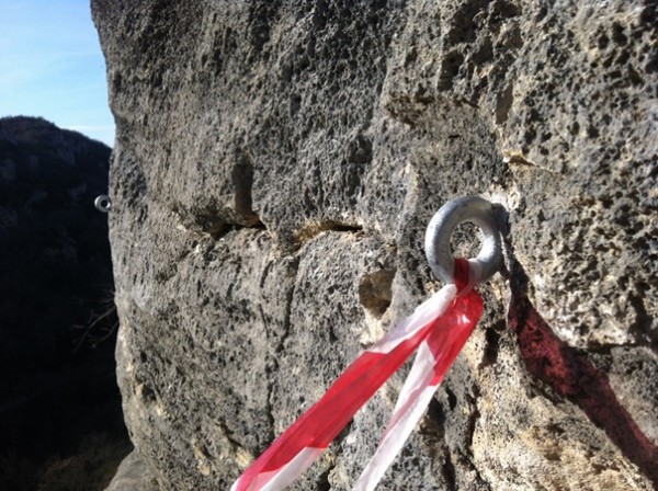 Donc si vous venez à Buoux ces jours ci…Le secteur est franchement sinistré…jusqu’à la prochaine pluie …Merci pour votre compréhension … Pour les deux jours qui viennent, ne pas utiliser les scellements avec rubalise…Et il y a une nouvelle voie …’