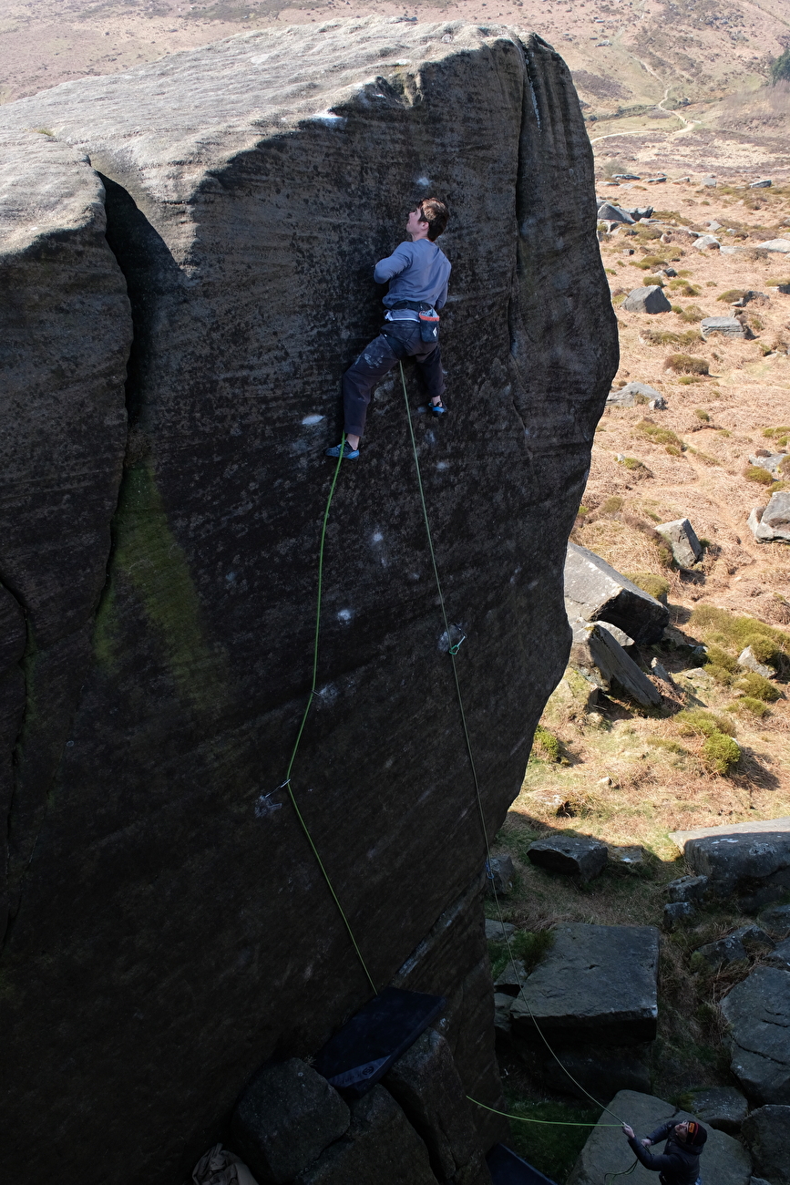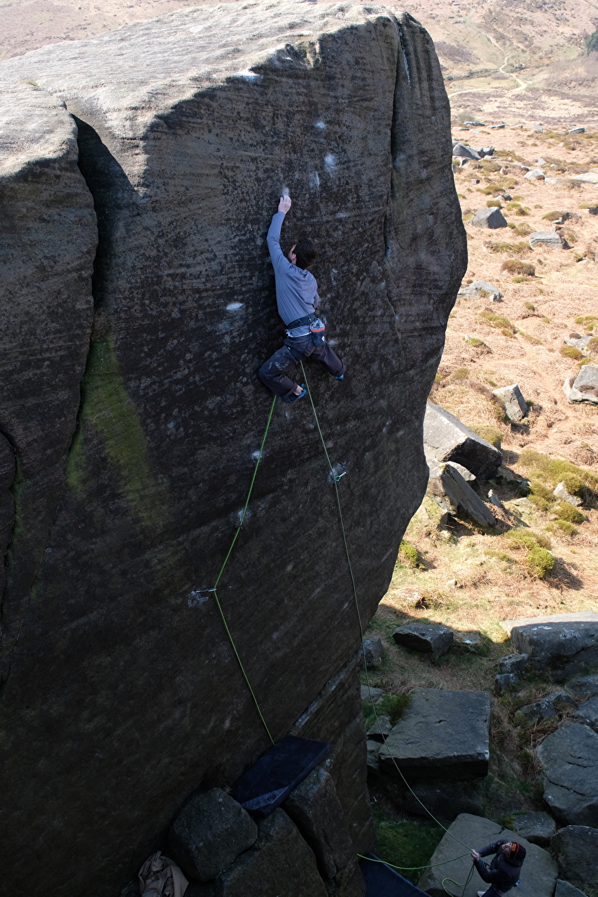 Jim Pope poursuit son déchaînement de grits. Après avoir fait la troisième ascension de Dynamique du changement début mai, puis établir le rocher incroyablement sculpté Porte de nuage À Cratcliffe Tor, le joueur de 26 ans est maintenant revenu à la même section de rock au Burbage pour faire la deuxième ascension tant attendue de Dalle de grand-père. Tout comme Dynamique du changement, Dalle de grand-père a été monté pour la première fois par Pete Whittaker qui, 18 ans-young à l’époque, a réussi à ajouter la finition directe au chef-d’œuvre de Johnny Dawes en 1984 Braille Trail.