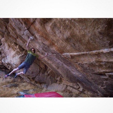 *** Le grimpeur américain Jimmy Webb vient de réaliser la seconde ascension du bloc ouvert par Daniel Woods à Thunder Ridge, Colorado, ‘Defying gravity’, 8C il y un an. Les deux grimpeurs avaient essayé ensemble l’année passée et Daniel avait réussi la première en utilisant une petite pince qui lui permettait de faire le crux statique, s’évitant un gros mouvement de pan Güllich. Webb, lui n’a pas fait dans la dentelle ! (cf photo ci-dessous)
