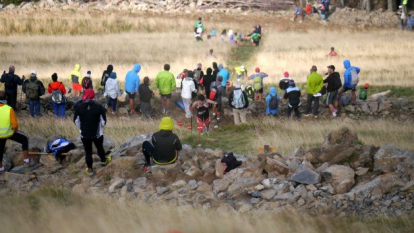 Pour cette 6ème édition, le club alpin français Dauphiné Ski Alpinisme, l’organisateur, a souhaité lui donner encore plus d’ampleur. D’abord avec la mesure du parcours par un géomètre-expert afin d’attester officiellement du dénivelé. Ensuite par un travail minutieux pour préparer le terrain : les bénévoles du club y passent plusieurs journées, maniant débroussailleuse et pioche. Et le jour J ce sont 270 participants qui viennent retirer dossard et lot dans la petite salle communale de Cholonge dont la population double à cette occasion. On retrouve des habitués de la VGS, des locaux et de nombreuses têtes nouvelles. Le « buzz » a bien fonctionné, autant via le bouche à oreille que les réseaux sociaux, boosté par l’annonce de la venue de la star du trail-running, Kilian Jornet en personne ! Aussi c’est l’effervescence sur la ligne de départ, donné pour la première fois en Contre la Montre. Une formule adaptée pour tenter de battre le « record » mondial détenu actuellement par Urban Zemmer juste sous les 30 min et établi à Fully en Suisse en octobre 2014. Autre avantage, le flux continu de coureurs assure le spectacle pendant près de 3h. Les spectateurs nombreux sur toute la montée encouragent chaleureusement les participants. Une super ambiance règne malgré le vent du nord et le brouillard installé sur le dernier tiers du parcours et au sommet.