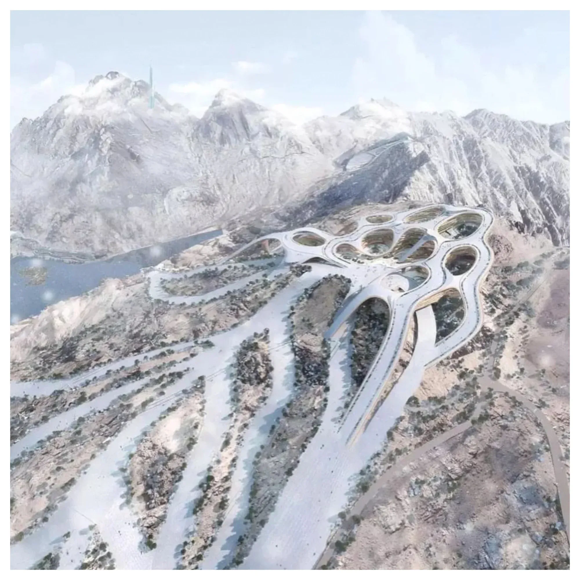 Trojena a été dévoilée pour la première fois en mars 2022 et a reçu le droit d’accueillir les Jeux de 2029 avant le début de la construction. Le complexe devrait s’étendre sur plus de 60 kilomètres carrés à des altitudes atteignant 2 600 mètres, avec plus de 30 km de runs de ski, un lac artificiel et des hébergements de luxe.