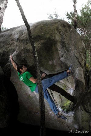 Malgré des conditions météo exécrables, le membre de l’équipe de France et grimpeur parisien Alban Levier a réalisé une répétition de ‘L’arête de boissy’, 8B+ à Boissy aux Cailles dans le Sud de la forêt de Fontainebleau ce matin.