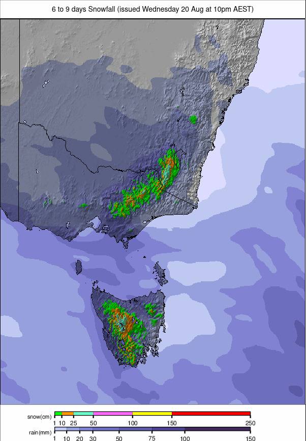 SE Australia Snow Prévisions pour les 6 à 9 prochains jours.