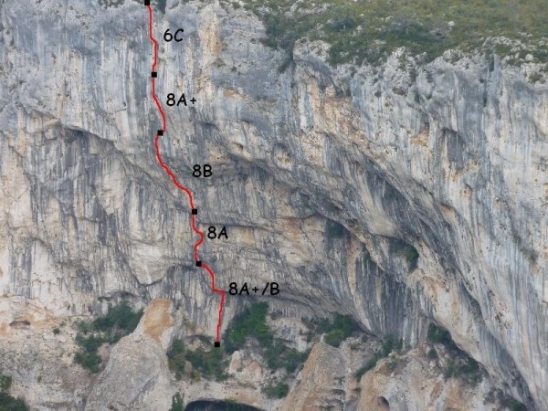 Au secteur de La Ramirole : « La Ramirole », 180 m / 60m d’avancée / 4 longueurs / 8a+, 8a, 8b, 8a+, 7a