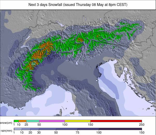 La zone de ski Zermatt-Cervinia (10/110 cm / 4/44 ”) sur la frontière suisse / italienne et les 2 Alpes (10/285 cm / 4/114”) en France vise à maintenir 1000 m de vertical skiable tout au long de ce mois si les conditions le permettent. Cela pourrait être le plus grand mai vertical au monde, ainsi que le terrain le plus étendu ouvert en Europe cette semaine. Du 10 au 18 mai, le complexe accueillera la tournée recrue du monde. Les coureurs internationaux se réuniront aux 2 ALPES pour une semaine de camps (juniors et moins de 17 ans), suivis d’un week-end de concours de slopestyle aux 2 ALPES Snowpark à 3 400 m. Les profondeurs de base signalées sont restées largement inchangées à partir d’il y a une semaine. Bien que certaines températures chaudes sur les glaciers se soient parfois produites, elles ont été partiellement compensées par des chutes de neige légères à modérées sur des pentes élevées, avec des glaciers signalant 2 à 10 cm (1-4 ”) de neige à certains jours au-dessus de 2500 m, entre plus de périodes ensoleillées. au-dessus de 2 000 m.