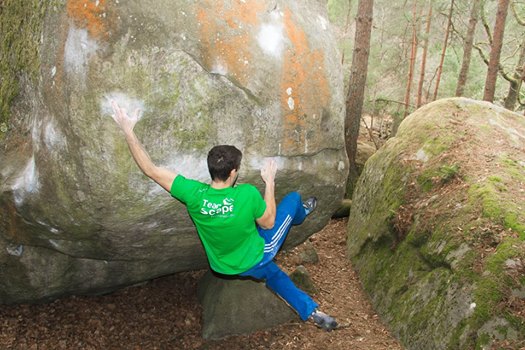 Le jeune italien Michael Piccolruaz (19 ans) a réussi la première ascension en 8C de ‘La grosse tarlouze’ à Magic Wood en Suisse. Ce bloc rajoute une vraie sortie engagée au 8B+ classique de ‘Never ending story’ qui finissait pendu à un bac à 2 mètres du sol. La chute potentielle en haut de ‘La grosse tarlouze’ et ça finit dans la rivière…