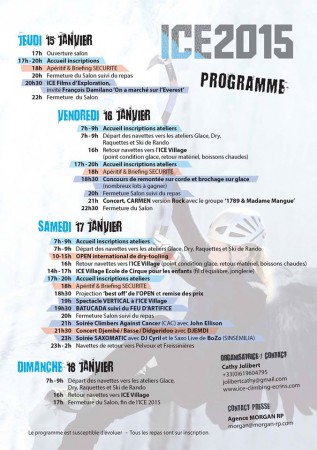 Les nouveautés de cette année: ateliers randonnée à ski et raquettes, atelier escalade sur glace que pour les filles, des films primés jeudi soir, une compet de dry-tooling, des concours de remontée sur cordes et brochage de glace le vendredi, un atelier de cirque pour les enfants et du son avec DJEMDI et Saxomatic samedi! What else?