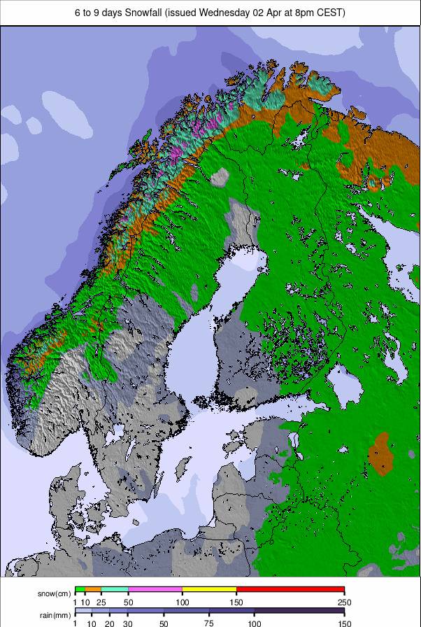 Des conditions principalement sèches et ensoleillées sont attendues, les températures dépassant + 5 ° C et jusqu’à + 10 ° C dans les régions les plus sud. Des bas de nuit sur les pentes supérieures et dans le nord de la Scandinavie devraient encore tomber en dessous de zéro, conduisant à des cycles de congélation.